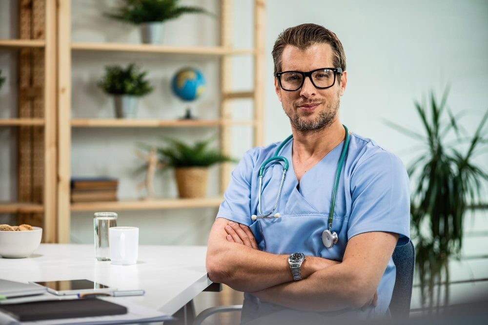 A medical professional holding a stethoscope in a modern clinic, symbolizing trusted healthcare services at Medical Center Milford Delaware.
